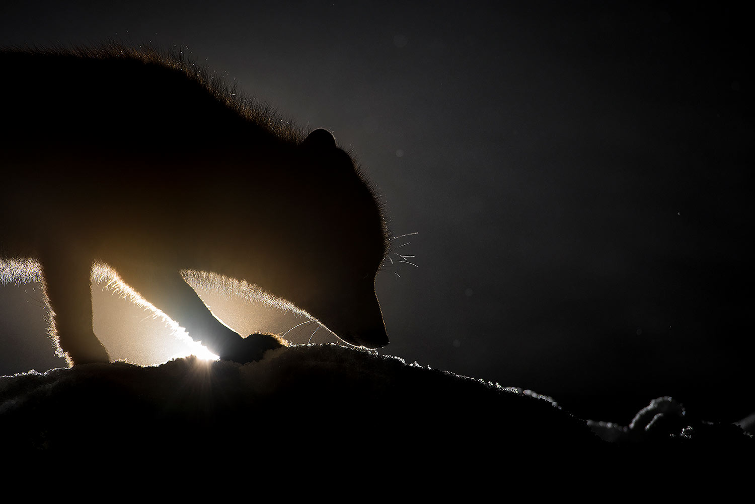 Besonders in Erinnerung geblieben ist mir eine Begegnung mit einem Polarfuchs, den ich bereits seit mehreren Tagen aus der Ferne beobachten konnte. Ich hatte das unfassbare Glück, dass sich dieses zarte Wesen nur wenige Meter vor mir in einer Schlafmulde zusammenrollte und unmittelbar vor mir einschlief. Ein Moment voller unbeschreiblicher Intensität.