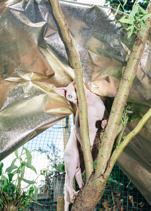Mein Go-To ist der Profoto A10 für Canon. Damit habe ich schon große Out-of-Home Kampagnen und ein ZEIT-Cover fotografiert. Ich mag die direkte, harte Lichtqualität, die sehr gut zu meiner Bildsprache passt. Je nach Produktion arbeite ich auch mit größeren Setups wie Profoto, ARRI oder Briese. Kameraseitig fotografiere ich hauptsächlich mit der Canon R5, ergänzend auch mit Mittelformat von Fuji für großformatige Produktionen.