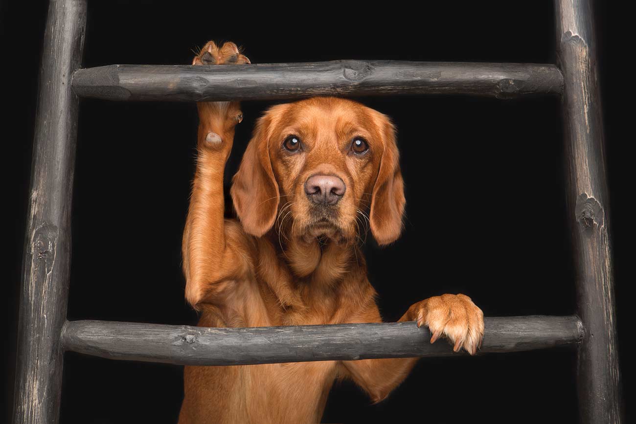 Meine Spezialisierung auf Hunde im Studio kam eigentlich recht ungewollt meinerseits. Ich habe einige Jahre das Ein-Bild-pro-Tag-Projekt durchgehalten. Im Winter jedoch war ich zu faul meine Kamera bei schlechtem Wetter mit nach draußen zu nehmen. Ich kaufte einen günstigen Blitz und machte erste Studioversuche, empfand Studiofotografie jedoch als extrem langweilig. Ich stelle mir gelangweilt dreinschauende Hunde auf Pappen liegend vor. Das wollte ich so nicht. Daher hab ich von Anfang an versucht, etwas zu schaffen, was ich spannender finde. So kam es zu den zuweilen eher urigen und lustigen Portraits. Das kam gut an und ging viral. Heute macht mir die Studiofotografie sehr viel Spaß.