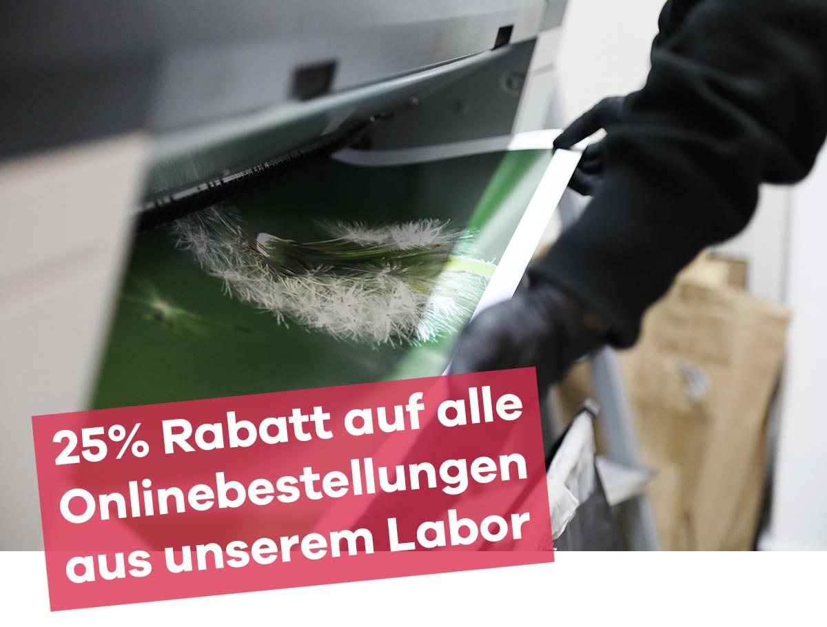 Unser hauseigenes Fotolabor produziert für Sie auch weiterhin und bietet Ihnen bei Onlinebestellungen einen 25% Rabatt auf alle Fotoarbeiten, wie Fotoabzüge, Poster und Kalender. 20% gibt es auf Fotobücher unserer Partnermanufaktur fotobook mit dem Gutscheincode SPRING2020.